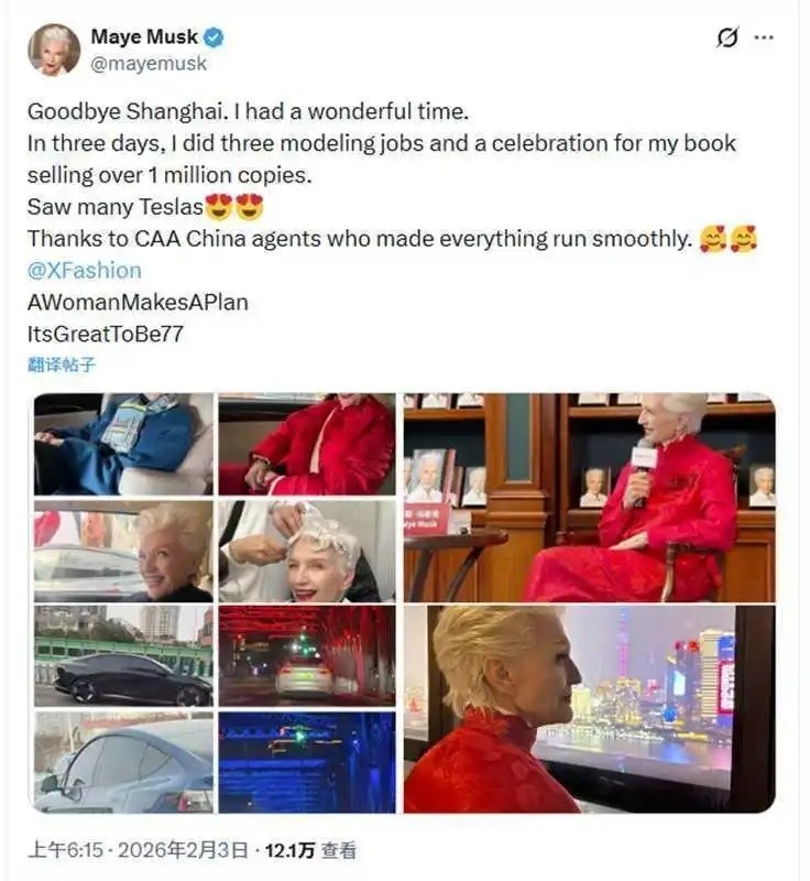 据CNMO了解,事情的起因是,近日梅耶·马斯克在社交平台分享了自己结束上海旅程的心情。她表示,“再见上海,我度过了非常愉快的时光。三天里完成了三个模特工作,还庆祝了我的书销量破百万册,路上看到好多特斯拉”。同时,她晒出四宫格拼接照片,其中包括四张汽车图。令人意外的是,其中一辆黑色汽车并非特斯拉,而是深蓝汽车。此次“误认”事件,无疑为深蓝汽车乃至整个中国新能源汽车行业增添了一抹亮色。