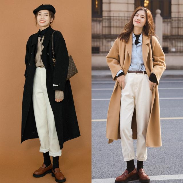 米白色乐福鞋适合春天浅色系的穿搭,配浅蓝色衬衫和白裤子显得干净清爽,但米白的缺点是不耐脏,如果你经常走泥地或者赶雨天通勤,建议还是选黑色和棕色更稳妥。
