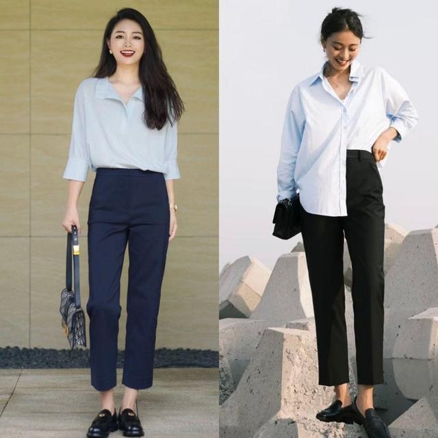 >>> 九分裤露脚踝+乐福鞋露脚背,干练清爽显腿长